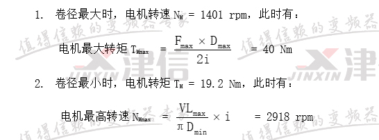 卷徑從最小到最大時(shí),電機(jī)轉(zhuǎn)速、轉(zhuǎn)矩和功率的變化關(guān)系如下圖: